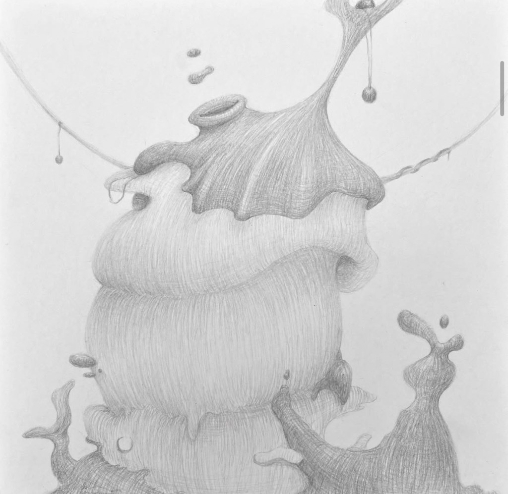 في هذه الاعمال الصغيرة، لا نرى كائنات ولا مشاهد، بل حالات. هناك جاذبية داخلية للفراغ كما للمادة. يتعامل القواسمي مع البياض كعنصر فاعل، لا كمجرد خلفية، ويمنح التظليل حقه في التعبير كإيقاع عام. ثمة أثر شبه تشريحي في التكوين، لكنه لا يحاكي الجسد، بل ربما يُذكّر بما بعد الجسد: بذاكرتنا العضوية، أو تخيّلاتنا لما لا نراه لكن نحسّه.